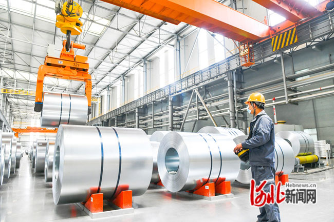 10月19日,承德釩鈦新材料有限公司車間正在吊裝釩鈦冷軋產品。河北日報通訊員劉士富攝